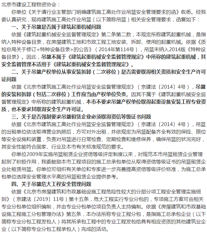 吊籃是否屬于起重機(jī)械(北京市建委解讀)